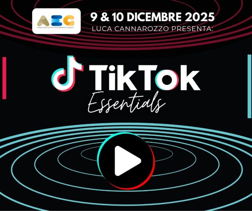 Il 9 e 10 dicembre 2026 ho avuto il piacere di ideare e tenere un corso di TikTok Marketing presso la sede dell’AEG – Associazione Extralberghiere Gargano, a Vieste. Due giornate intense e partecipate, nate da un’esigenza sempre più chiara nel settore turistico: capire come comunicare in modo efficace e autentico su TikTok.